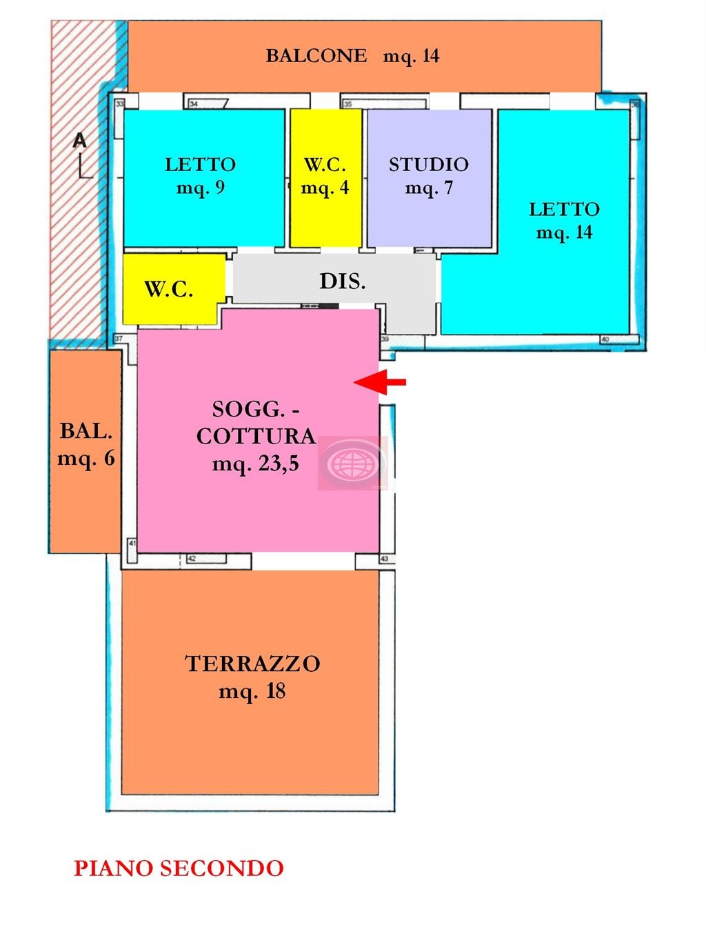 Ascensore, Terrazzi 23 mq, Balconi 20 mq, Predisposizione condizionatore