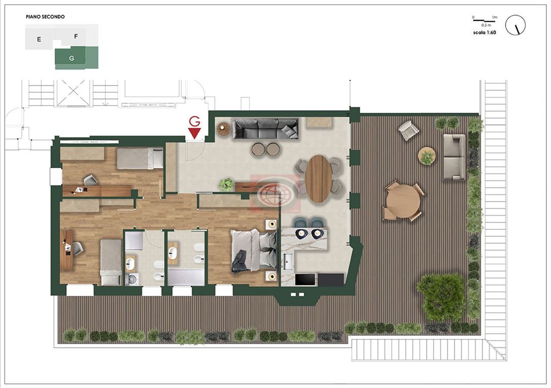 CESENA CENTRO URBANO ( AC620g ): Per gli amanti del centro città, in posizione strategica tra la stazione e il centro storico, è in fase di realizzazione la totale ristrutturazione di un palazzo di sette piani, con l' ambizioso intento di mantenere lo spirito del passato rivisitandolo in chiave moderna, più eco sostenibile e verde, senza snaturare alcune scelte stilistiche del suo primo progettista ( il futurista arch. Quirino De Giorgio ): la ceramica smaltata della facciata, ad esempio, vuole rappresentare un continuum e un tributo ai vecchi rivestimenti diamantati del progetto originale; il metallo bronzato, i legni e il verde di logge e balconi ne esalteranno l' eleganza; la tecnologia dei materiali impiegati e degli impianti completamente riprogettati lo renderanno un riferimento per l' abitare a Cesena. Questo progetto renderà il palazzo un giardino nel centro della città, uno spazio caldo e familiare, ma al tempo stesso verde e aperto; gli spazi esterni diventeranno elemento imprescindibile di una casa da vivere dentro e fuori. La posizione privilegiata, anche adiacente alle principali scuole cittadine e al centro commerciale Montefiore, permetterà ai futuri fortunati abitanti del palazzo, di avere tutto a portata di mano senza rinunciare ai comfort di una costruzione contemporanea. Il CAPITOLATO prevede la scelta tra 3 stili di rifiniture interne ( City, Comfort e Nature, nelle varianti chiaro e scuro ) e tra le caratteristiche salienti della struttura troviamo: riscaldamento a pavimento alimentato da pompa di calore centralizzata con conta calorie, raffrescamento a ventil alimentato con pompa di calore centralizzata, pannelli fotovoltaici ( 50 kw ripartiti tra le varie unità abitative ), cappotto termico, predisposizione allarme anti intrusione, irrigazine automatica fioriere, infissi in alluminio doppio o triplo vetro a secondo del progetto termico. L' APPARTAMENTO qui proposto è collocato al SECONDO PIANO ( servito da ascensore ) ed i suoi spazi interni risultano così distribuiti: zona giorno open space di 40 mq., n° 3 camere da letto ( 14+12+11 mq. ), 2 bagni, TERRAZZO di oltre 87 mq.; completano la proprietà una cantina e un doppio posto auto coperto al prezzo di Euro 40.000. - NB1: BONUS RISTRUTTURAZIONE ( legge 20/12/2021 n° 234 ) pari al 25% sul 50% del prezzo, fino ad un massimo di 48.000 Euro, detraibile in 10 anni. - NB2: Possibilità di usufruire, con prezzi a partire da 1000 euro, di INTERIOR PACK SU MISURA ( progetto distribuzione spazi interni e scelta materiali, progetto illuminotecnico, progetto esecutivo arredi su misura, consulenza tecnica per elementi di arredo da appoggio, consulenza tecnica per accessori e oggettistica ). - NB3: le presenti informazioni non costituiscono elemento contrattuale.
