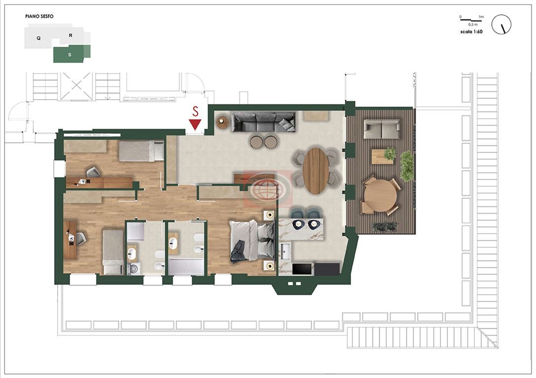 CESENA CENTRO URBANO ( AC620s ): Per gli amanti del centro città, in posizione strategica tra la stazione e il centro storico, è in fase di realizzazione la totale ristrutturazione di un palazzo di sette piani, con l' ambizioso intento di mantenere lo spirito del passato rivisitandolo in chiave moderna, più eco sostenibile e verde, senza snaturare alcune scelte stilistiche del suo primo progettista ( il futurista arch. Quirino De Giorgio ): la ceramica smaltata della facciata, ad esempio, vuole rappresentare un continuum e un tributo ai vecchi rivestimenti diamantati del progetto originale; il metallo bronzato, i legni e il verde di logge e balconi ne esalteranno l' eleganza; la tecnologia dei materiali impiegati e degli impianti completamente riprogettati lo renderanno un riferimento per l' abitare a Cesena. Questo progetto renderà il palazzo un giardino nel centro della città, uno spazio caldo e familiare, ma al tempo stesso verde e aperto; gli spazi esterni diventeranno elemento imprescindibile di una casa da vivere dentro e fuori. La posizione privilegiata, anche adiacente alle principali scuole cittadine e al centro commerciale Montefiore, permetterà ai futuri fortunati abitanti del palazzo, di avere tutto a portata di mano senza rinunciare ai comfort di una costruzione contemporanea. Il CAPITOLATO prevede la scelta tra 3 stili di rifiniture interne ( City, Comfort e Nature, nelle varianti chiaro e scuro ) e tra le caratteristiche salienti della struttura troviamo: riscaldamento a pavimento alimentato da pompa di calore centralizzata con conta calorie, raffrescamento a ventil alimentato con pompa di calore centralizzata, pannelli fotovoltaici ( 50 kw ripartiti tra le varie unità abitative ), cappotto termico, predisposizione allarme anti intrusione, irrigazine automatica fioriere, infissi in alluminio doppio o triplo vetro a secondo del progetto termico. L' APPARTAMENTO qui proposto è collocato al SESTO PIANO ( servito da ascensore ) ed i suoi spazi interni risultano così distribuiti: zona giorno open space di 40 mq., n° 3 camere da letto ( 14+12+11 mq. ), 2 bagni, TERRAZZO di 19 mq.; completano la proprietà una cantina ed un posto auto coperto al prezzo di Euro 37.000. - NB1: BONUS RISTRUTTURAZIONE ( legge 20/12/2021 n° 234 ) pari al 25% sul 50% del prezzo, fino ad un massimo di 48.000 Euro, detraibile in 10 anni. - NB2: Possibilità di usufruire, con prezzi a partire da 1000 euro, di INTERIOR PACK SU MISURA ( progetto distribuzione spazi interni e scelta materiali, progetto illuminotecnico, progetto esecutivo arredi su misura, consulenza tecnica per elementi di arredo da appoggio, consulenza tecnica per accessori e oggettistica ). - NB3: le presenti informazioni non costituiscono elemento contrattuale.