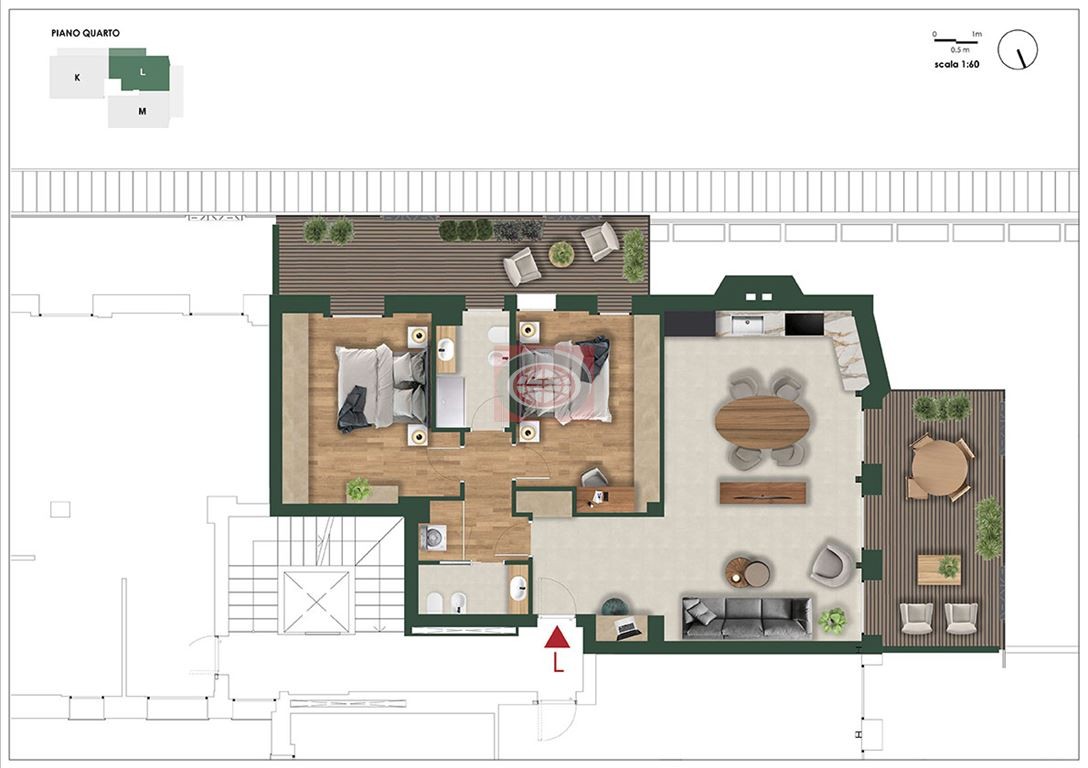 Ascensore, Portineria, Terrazzi 19 mq, Balconi 16 mq, Condizionatore, Predisposizione allarme