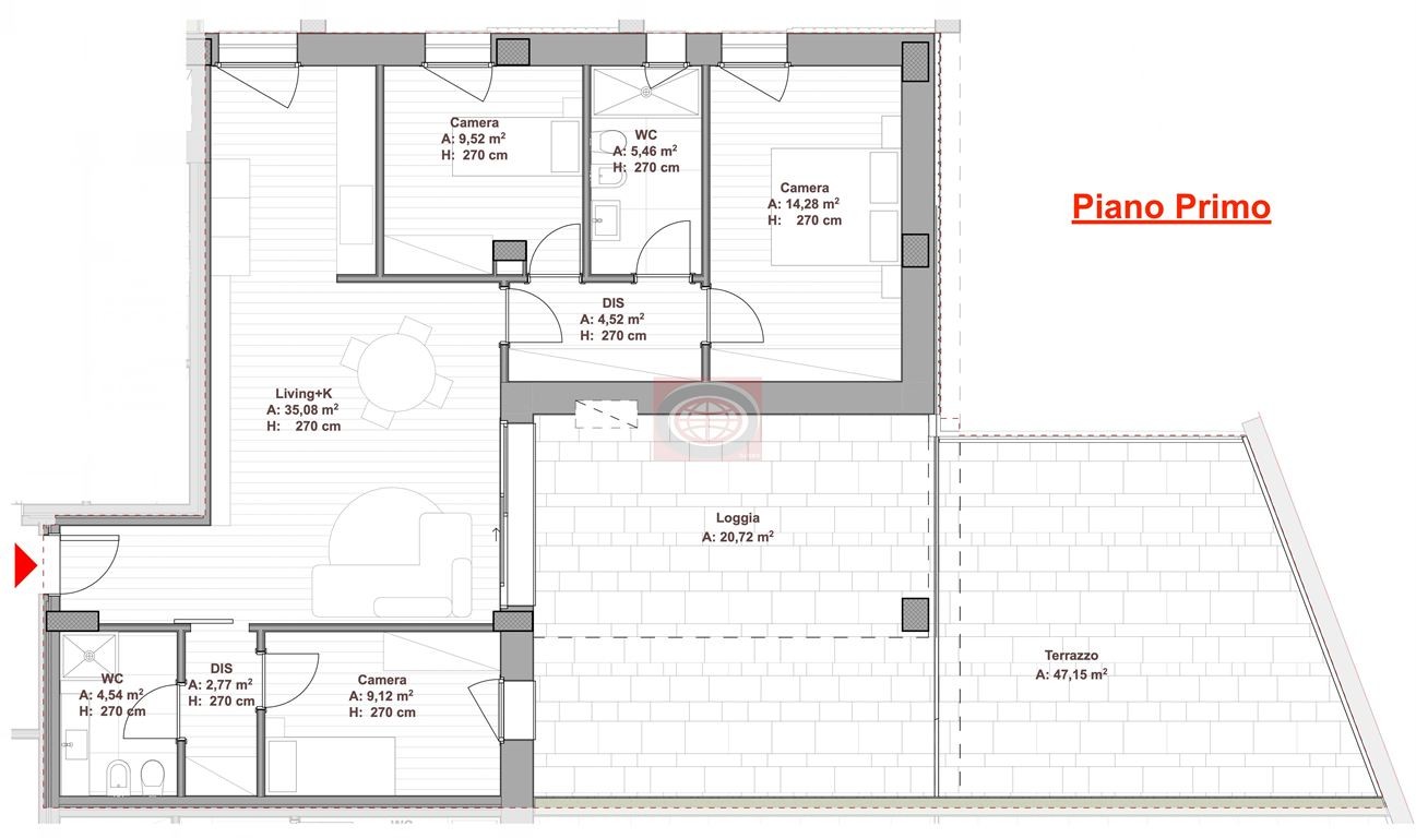 Ascensore, Terrazzi 67 mq, Cantina 10 mq, Giardino condominiale, Predisposizione condizionatore, Predisposizione allarme