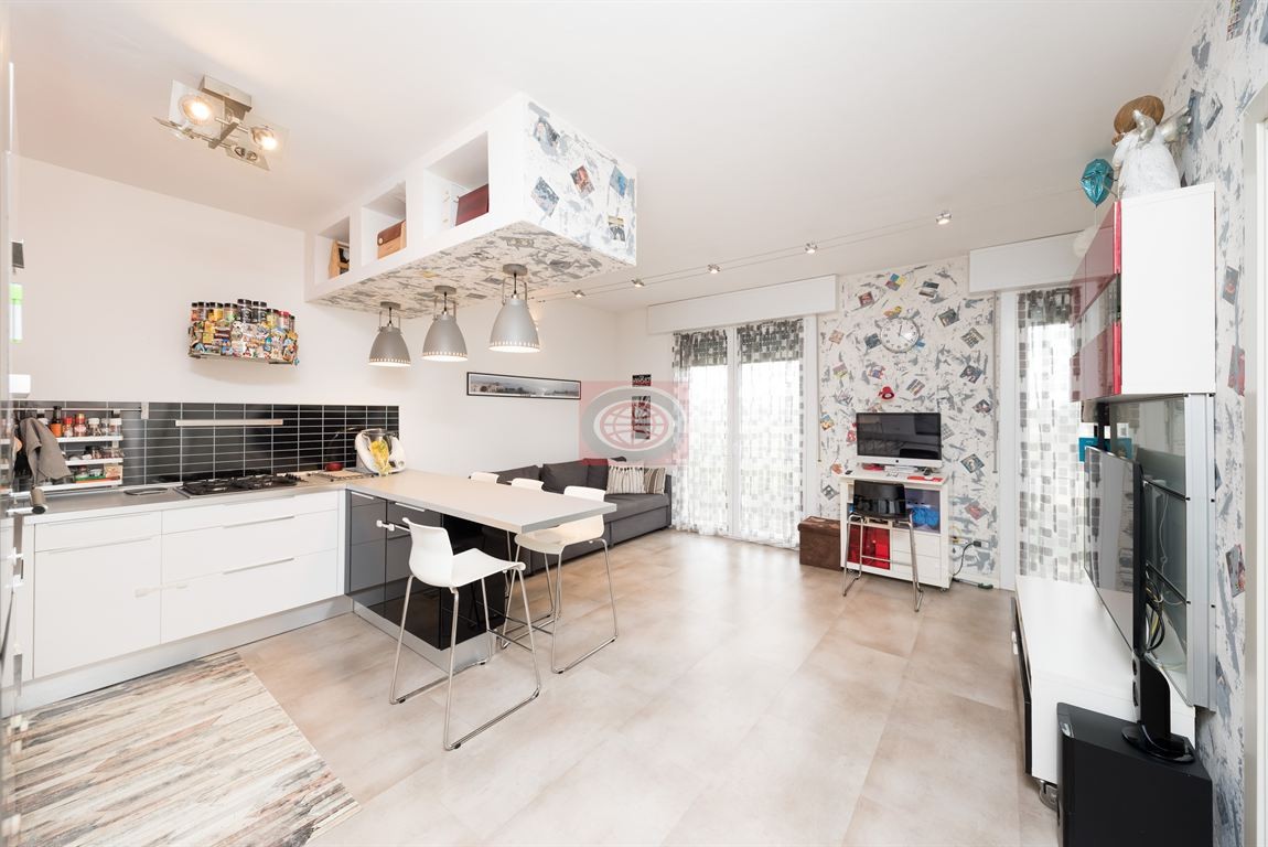 Cesena, Zona Gattolino (TC1125) in palazzo residenziale costruito nel 1997 proponiamo appartamento ristrutturato nel 2022, disposto su due livelli abitabili e così composto: PIANO SECONDO ingresso su soggiorno con zona cottura a vista (mq25) , antibagno-bagno, scala d'arredo che accede al PIANO TERZO (piano marsardato ABITABILE e finestrato) dove troviamo la zona notte così suddivisa: disimpegno, camera doppia (mq13,50), camera matrimoniale con cabina armadio (mq 21), bagno di 9 mq com pavimento in resina e completo di vasca idromassaggio e box doccia. terrazzo verandato con copertura motorizzata. Completa la proprietà il comodo garage al piano interrato. l'appartamento viene venduto completamente arredato. Infissi in PVC completi di zanzariere, climatizzatore del 2021, reparto notte ristrutturato completamente nel 2022, tapparelle motorizzate.