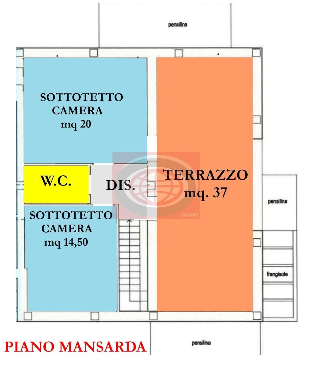 Terrazzi 36 mq, Balconi 14 mq, Mansarda 42 mq, Cantina 8 mq, Giardino di proprietà, Predisposizione condizionatore
