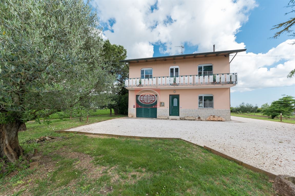 Cesena (CSC439), ubicata tra la Calabrina e Capannaguzzo, proponiamo casa singola in buone condizioni d'uso, disposta su due livelli così suddivisi: PIANO TERRA ampio ingresso, cucina-soggiorno-pranzo (mq 35,50), disimpegno, bagno, lavanderia, vano sottoscala, garage, ampio locale ad uso ripostiglio h-media 3.29 (mq 39) area pertinenziale di c.a 2500 mq; PIANO PRIMO, disimpegno (mq 15) quattro comode camere da letto (mq 18 + 17 + 17,50 + 11,40), bagno e balcone. La proprietà comprende anche 3 locali ad uso magazzino per un totale di 108,50 e 3,3 ettari di terreno agricolo irrigato e attualmente affittato. La casa necessita di qualche lavorino di ripristino ma è già abitabilissima nello stato attuale. Il prezzo comprende casa, magazzini e terreno agricolo, pozzo per l'irrigazione. Ulteriori informazioni in ufficio. N.B. le presenti informazioni non costituiscono elemento contrattuale.