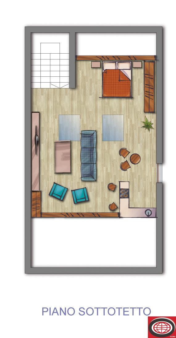 Balconi 2 mq, Mansarda, Giardino di proprietà 75 mq
