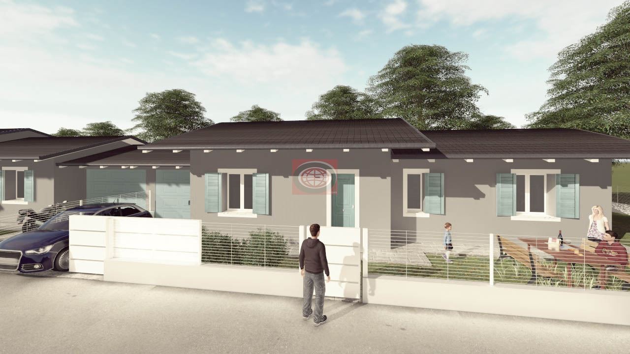 Cesena, zona PIEVESESTINA ( BTC265 ): vi proponiamo IN ESCLUSIVA prossima costruzione di bifamiliari disposte su unico piano , composte da ingresso su ampia e luminosa zona giorno open-space (Mq 37) caratterizzata dalle vetrate che si affacciano sul grande giardino angolare di circa mq 300, antibagno-bagno, disimpegno notte, tre camere da letto (Mq 14, 12, 9), bagno zona notte. completano la proprietà il garage e il posto auto privato. Situata nella prima periferia di Cesena questa residenza si trova in una zona residenziale tranquilla e ben servita. Caratteristiche principali: - ALTA EFFICIENZA ENERGETICA: Costruita con caratteristiche tali da garantire una Classe A+ ( cappotto termico da 15 cm. e impianto fotovoltaico da 6 Kw. ), questa villa riduce significativamente i costi energetici. - ISOLAMENTO ACUSTICO DI ALTA QUALITA', ASSENZA DI GAS: Tutti gli impianti funzioneranno esclusivamente grazie all'impiego di fonti rinnovabili, con la sola utenza elettrica, PERSONALIZZAZIONE DELLE RIFINITURE INTERNE Ulteriori informazioni in ufficio. - N.B.: Le presenti informazioni non costituiscono elemento contrattuale.