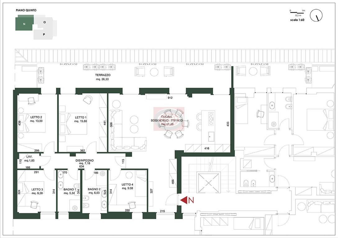 CESENA CENTRO URBANO ( AC620n ): Per gli amanti del centro città, in posizione strategica tra la stazione e il centro storico, è in fase di realizzazione la totale ristrutturazione di un palazzo di sette piani, con l' ambizioso intento di mantenere lo spirito del passato rivisitandolo in chiave moderna, più eco sostenibile e verde, senza snaturare alcune scelte stilistiche del suo primo progettista ( il futurista arch. Quirino De Giorgio ): la ceramica smaltata della facciata, ad esempio, vuole rappresentare un continuum e un tributo ai vecchi rivestimenti diamantati del progetto originale; il metallo bronzato, i legni e il verde di logge e balconi ne esalteranno l' eleganza; la tecnologia dei materiali impiegati e degli impianti completamente riprogettati lo renderanno un riferimento per l' abitare a Cesena. Questo progetto renderà il palazzo un giardino nel centro della città, uno spazio caldo e familiare, ma al tempo stesso verde e aperto; gli spazi esterni diventeranno elemento imprescindibile di una casa da vivere dentro e fuori. La posizione privilegiata, anche adiacente alle principali scuole cittadine e al centro commerciale Montefiore, permetterà ai futuri fortunati abitanti del palazzo, di avere tutto a portata di mano senza rinunciare ai comfort di una costruzione contemporanea. Il CAPITOLATO prevede la scelta tra 3 stili di rifiniture interne ( City, Comfort e Nature, nelle varianti chiaro e scuro ) e tra le caratteristiche salienti della struttura troviamo: riscaldamento a pavimento alimentato da pompa di calore centralizzata con conta calorie, raffrescamento a ventil alimentato con pompa di calore centralizzata, pannelli fotovoltaici ( 50 kw ripartiti tra le varie unità abitative ), cappotto termico, predisposizione allarme anti intrusione, irrigazine automatica fioriere, infissi in alluminio doppio o triplo vetro a secondo del progetto termico. L' APPARTAMENTO qui proposto è collocato al QUINTO PIANO ( servito da ascensore ) ed i suoi spazi interni risultano così distribuiti: zona giorno open space di oltre 51 mq., n° 4 camere da letto ( 16+13+9+9 mq. ), 2 bagni, lavanderia, TERRAZZO di 26 mq.; completa la proprietà un posto auto coperto al prezzo di Euro 35.000. - NB1: BONUS RISTRUTTURAZIONE ( legge 20/12/2021 n° 234 ) pari al 25% sul 50% del prezzo, fino ad un massimo di 48.000 Euro, detraibile in 10 anni. - NB2: Possibilità di usufruire, con prezzi a partire da 1000 euro, di INTERIOR PACK SU MISURA ( progetto distribuzione spazi interni e scelta materiali, progetto illuminotecnico, progetto esecutivo arredi su misura, consulenza tecnica per elementi di arredo da appoggio, consulenza tecnica per accessori e oggettistica ). - NB3: le presenti informazioni non costituiscono elemento contrattuale.