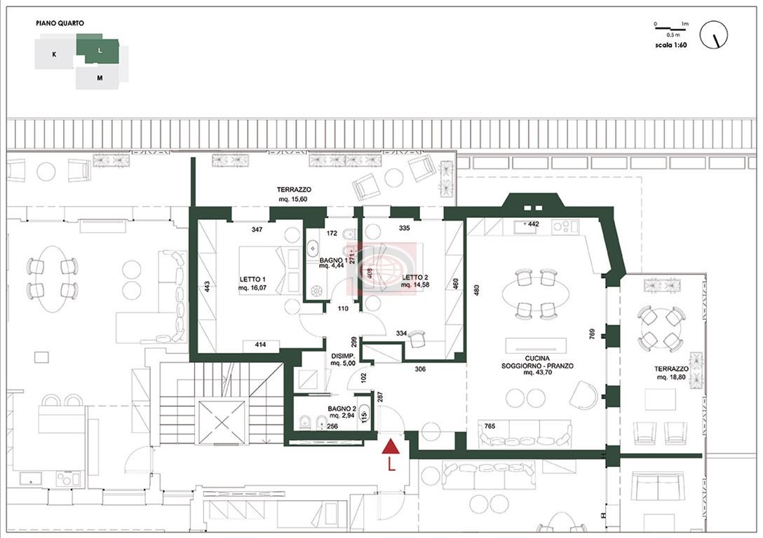 Ascensore, Portineria, Terrazzi 19 mq, Balconi 16 mq, Condizionatore, Predisposizione allarme