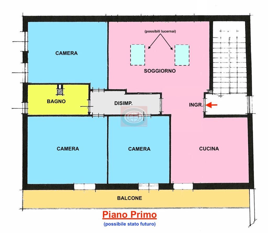 CESENA - Tipano (TC1032): In zona residenziale a poca distanza dai servizi, proponiamo appartamento in parte ristrutturato, confinante sul retro con un capannone artigianale. L'appartamento, dotato di INGRESSO INDIPENDENTE, è disposto su un UNICO PIANO e così composto: PIANO PRIMO: ingresso, cucina, ampio soggiorno (30 mq) divisibile in due camere, cucina abitabile, disimpegno, una camera da letto matrimoniale, un vano a ripostiglio (23 mq), un bagno ed un balcone; PIANO TERRA, Cantina e piccola corte (c.a. 25mq). La cucina e' arredata anche di lavatrice; Stufa a pellets nuova compresa nel prezzo.--- N.B. Possibilità di ricavare ulteriori due camere da letto, mantenendo sempre una zona giorno superiore ai 30 mq ( vedi planimetria possibile stato futuro ). Impianti a norma. Riscaldamento autonomo. Climatizzazione. --- N.B. Le presenti informazioni non costituiscono elemento contrattuale.
