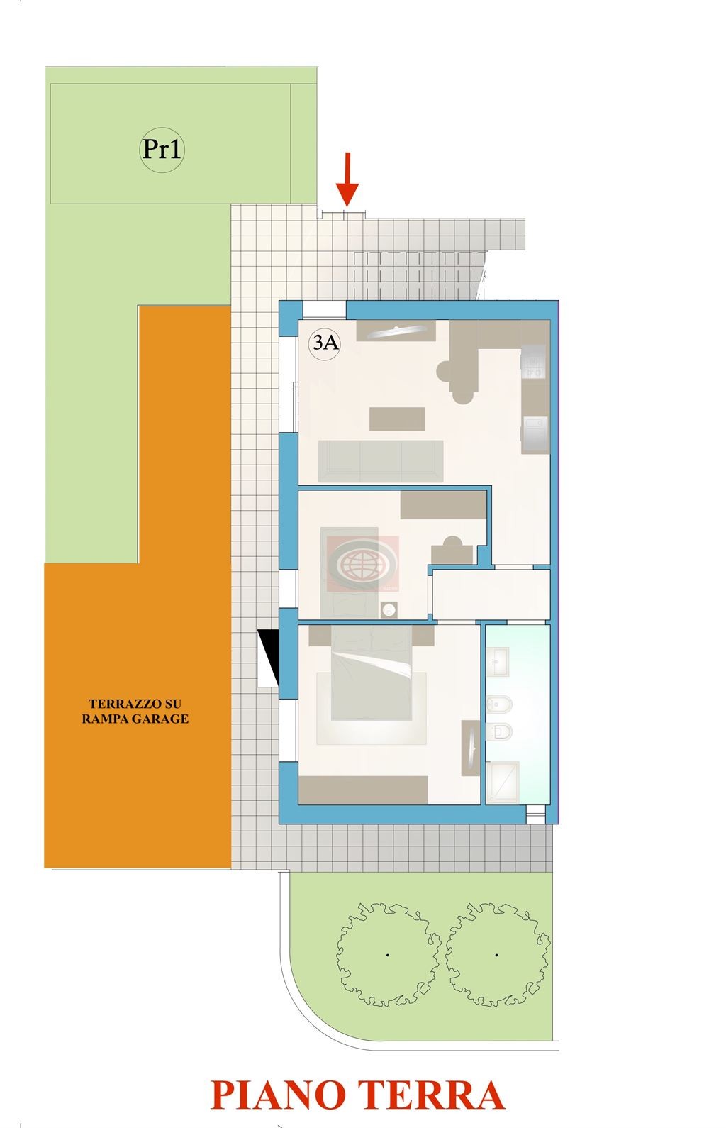 L'appartamento è posto al piano terra con ingresso indipendente ed è composto da ingresso su soggiorno con zona cottura a vista, disimpegno, due camere da letto, bagno, giardino privato di mq 135 in parte piastrellato, garage e posto auto .La costruzione viene fatte con accorgimenti per mantenere un alto risparmio energetico. NO GAS, impianto fotovoltaico 3 Kw, riscaldamento a pavimento mediante pompa di calore. Predisposizione di climatizzazione, allarme, aspirazione centralizzata e VMC. Ottime le finiture interne. Ulteriori informazioni in ufficio.N.B. le presenti informazioni non costituiscono elemento contrattuale.