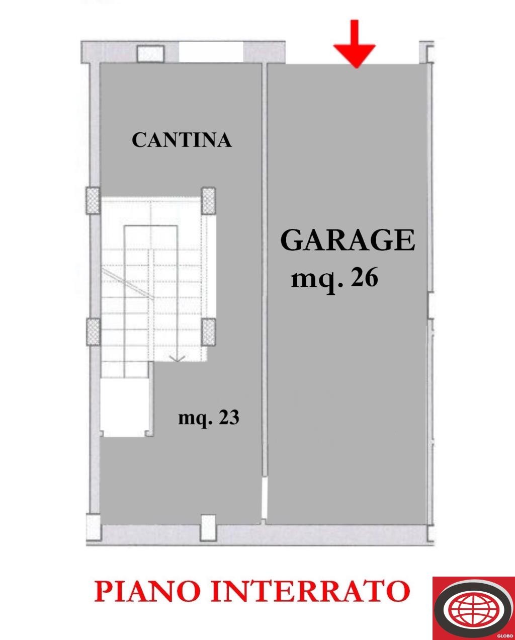 PIANO INTERRATO; il piano interrato è accessibile direttamente dall'interno dell'abitazione ed è suddiviso in vano di c.a. mq 24 ad uso servizi e garage di 26 mq.