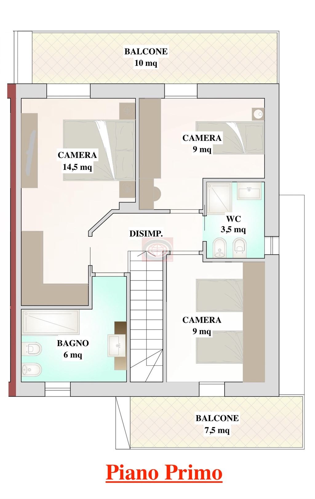 La villetta è disposta su due livelli così suddivisi: PIANO TERRA ingresso su soggiorno con angolo cottura (mq 29,50), antibagno-bagno, ampio giardino privato di mq 273 garage e posto auto; PIANO PRIMO disimpegno, tre camere da letto, due bagni, due balconi.