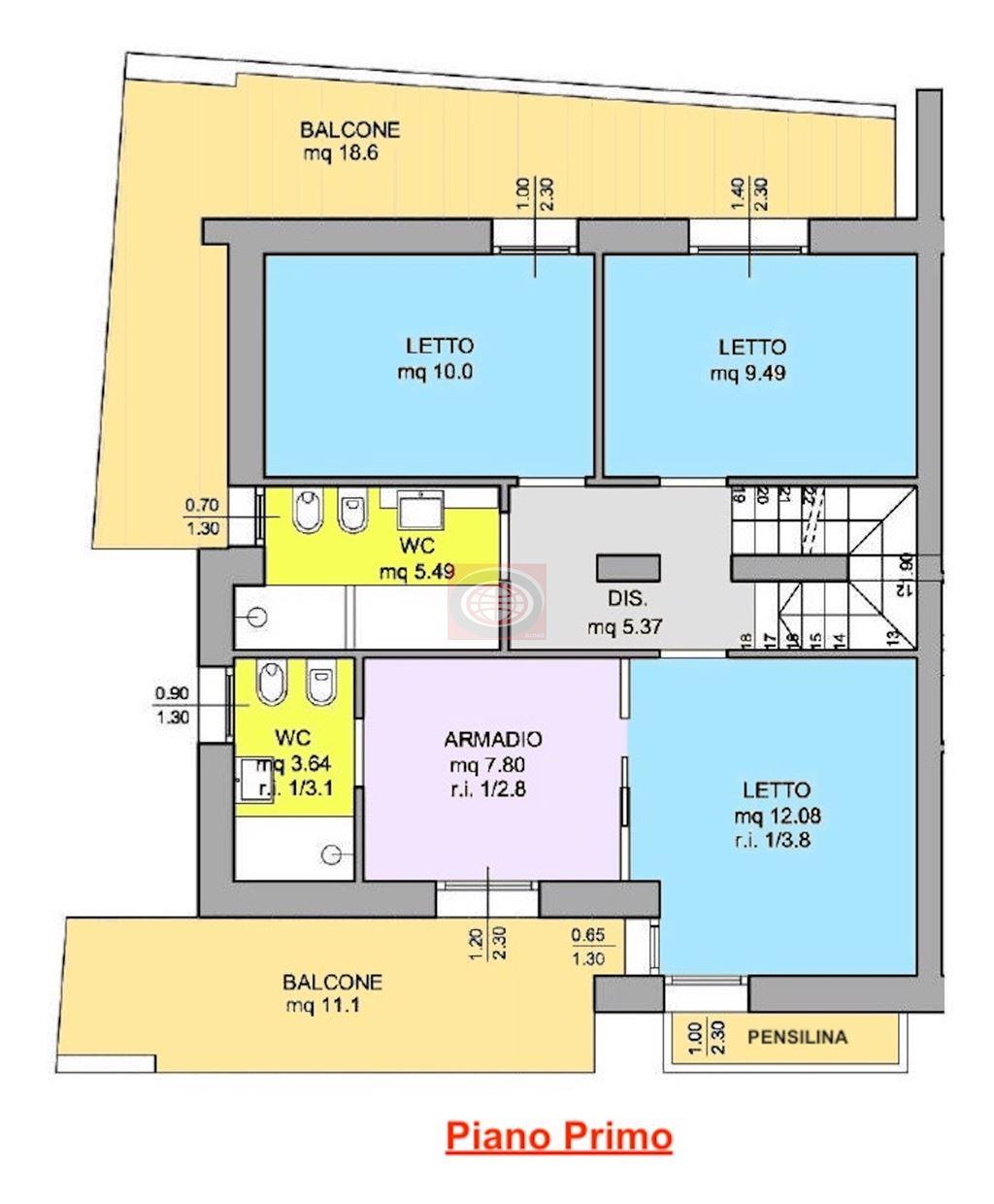 PIANO PRIMO - camera padronale con cabina armadio e bagno privato per un totale di oltre 20 mq, due camerette (mq 10 + 9,5), ulteriore bagno, 2 balconi;